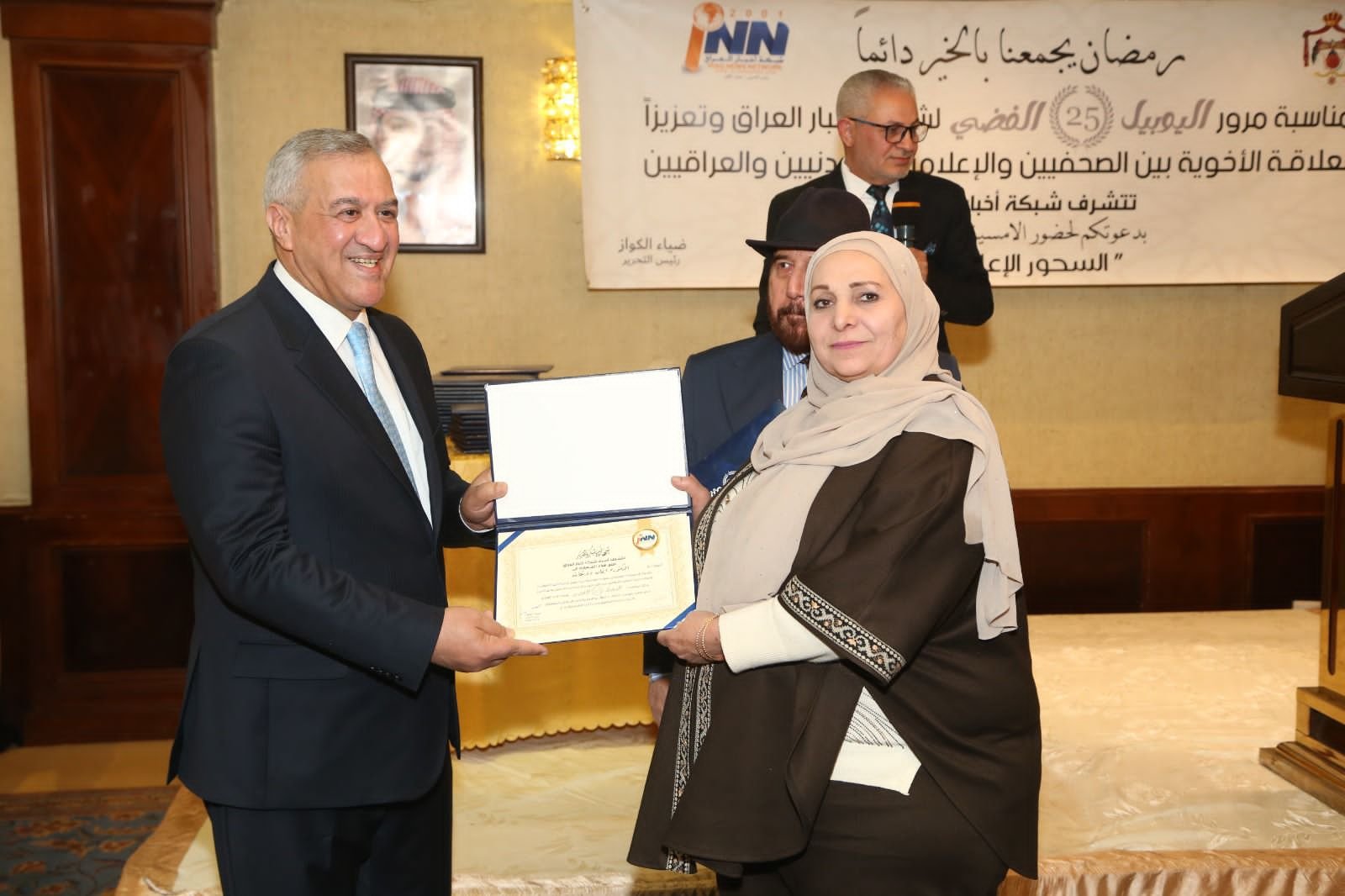 شهدت العاصمة الأردنية عمّان أمسية رمضانية مميزة جمعت نخبة من الإعلاميين والصحفيين من العراق والأردن، وذلك في مأدبة سحور أقامتها شبكة أخبار العراق احتفاءً باليوبيل الفضي لتأسيسها ومرور خمسةٍ وعشرين عامًا على انطلاقها في العمل الإعلامي.