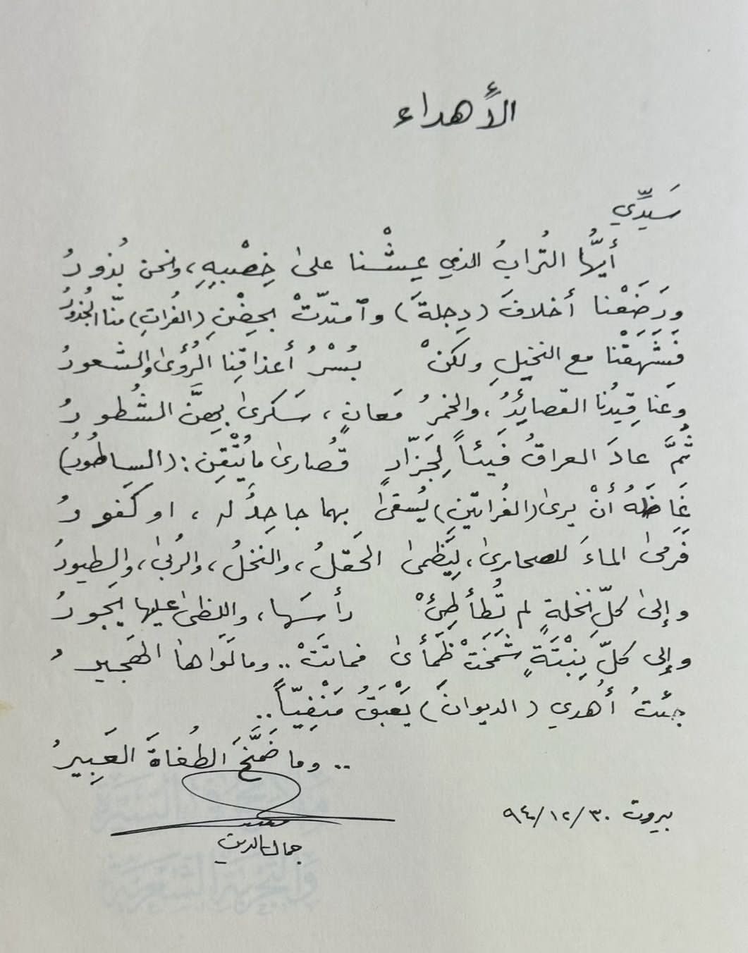 والإهداء على صفحته الأولى بخط يده البيضاء ،